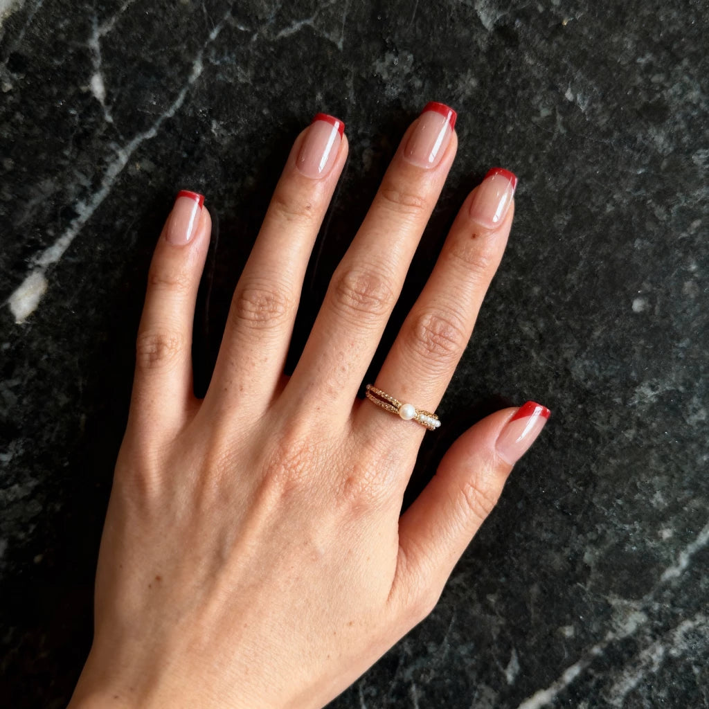 Poser la capsule de manière précise : Pour assurer une bonne tenue, il est essentiel d'appliquer la capsule correctement, en laissant un espace d'environ 1mm entre la cuticule et l'extrémité de la capsule. Utilisez la colle spécifique pour ongles, en évitant les excès qui pourraient fragiliser la liaison entre la capsule et l'ongle naturel.