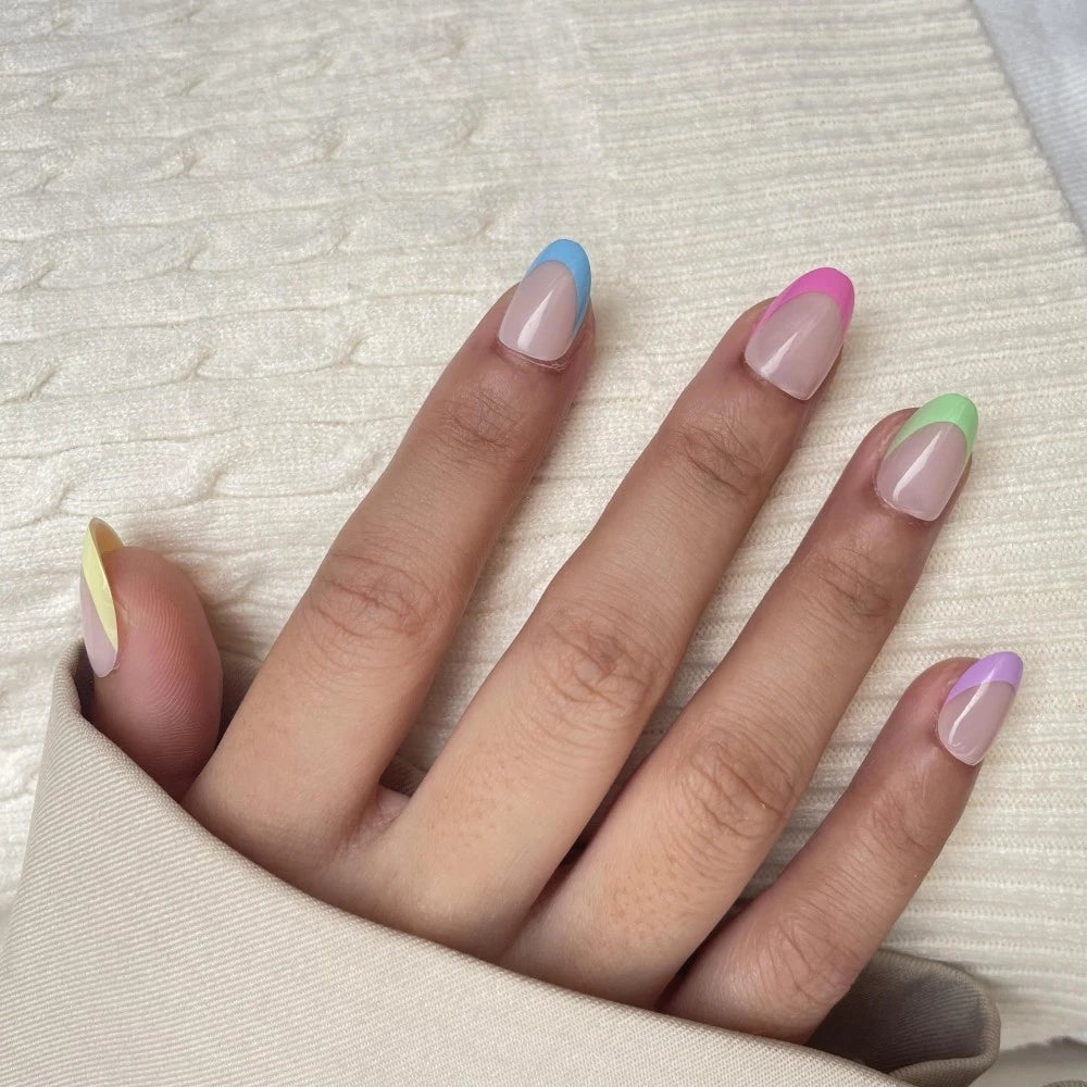 Pour celles qui souhaitent apporter une touche de fantaisie à leur French manucure, la version colorée est parfaite. Il suffit de remplacer le vernis blanc par une couleur de votre choix. N'hésitez pas à jouer avec les textures, les paillettes et les effets pour une manucure unique et personnalisée.