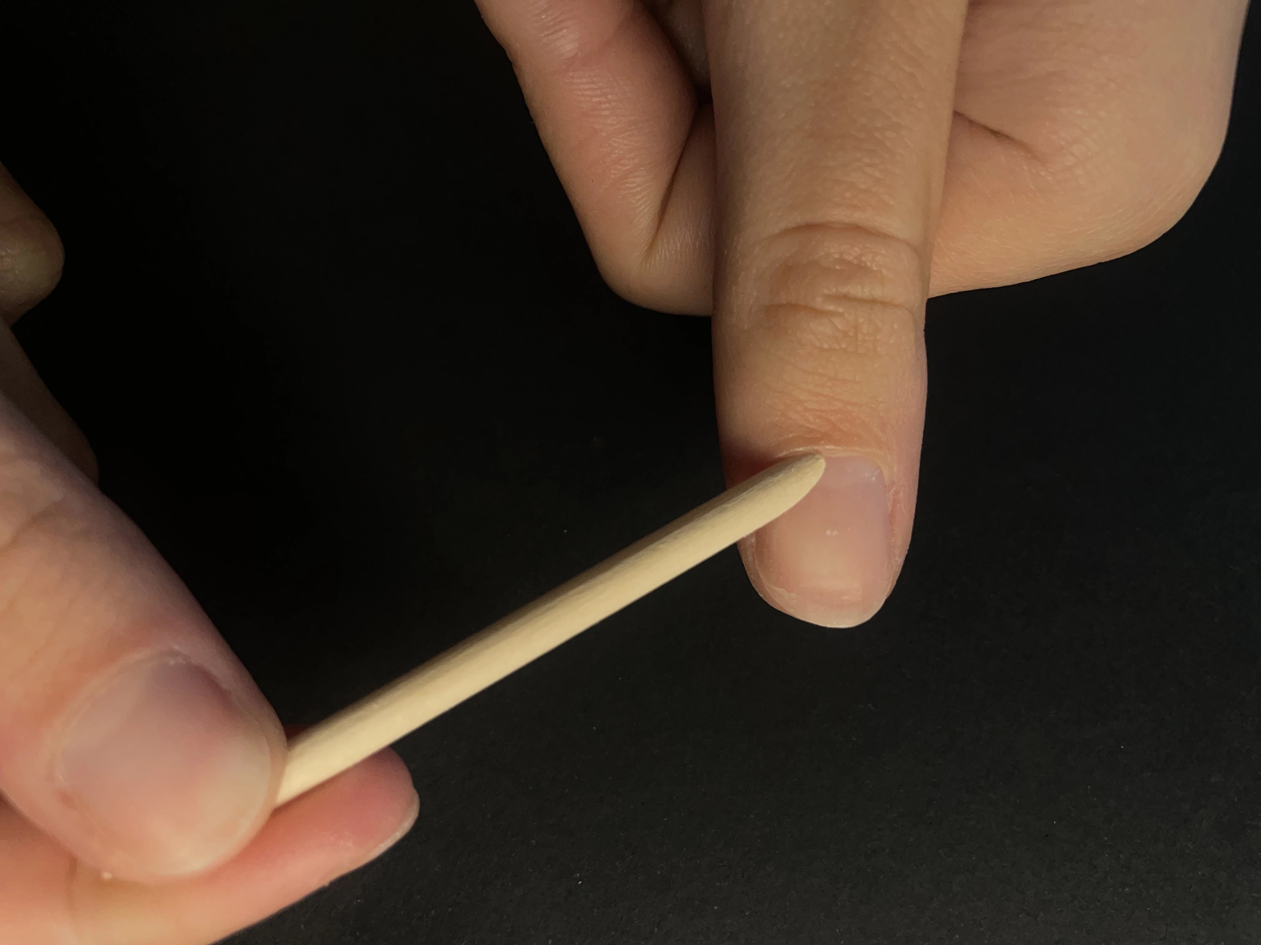Utilisez un bâtonnet pour repousser délicatement les cuticules, créant plus d'espace pour coller l’ongle.