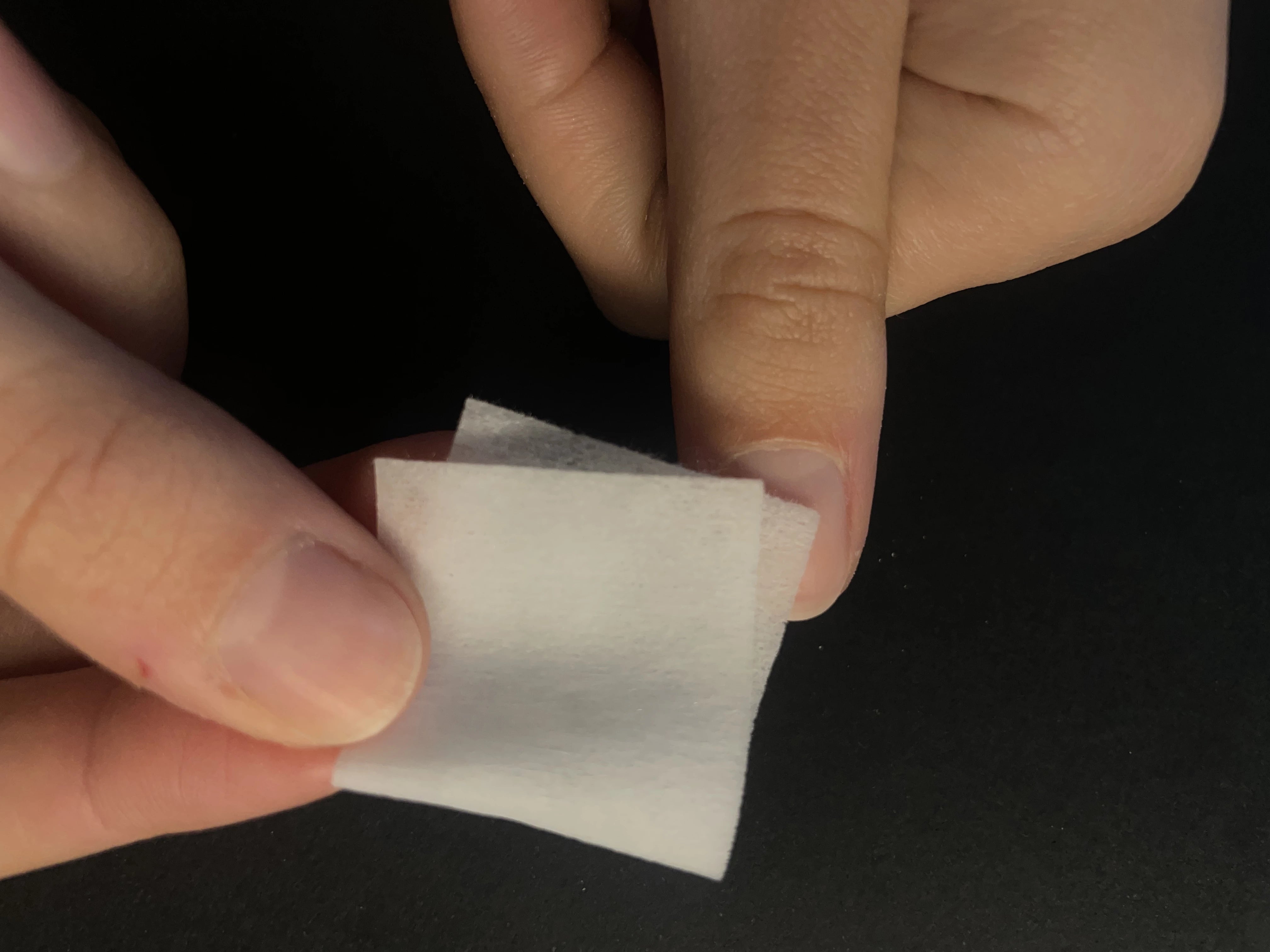 Frottez les pads autocollants entre vos doigts pendant quelques secondes pour activer l'adhésif.