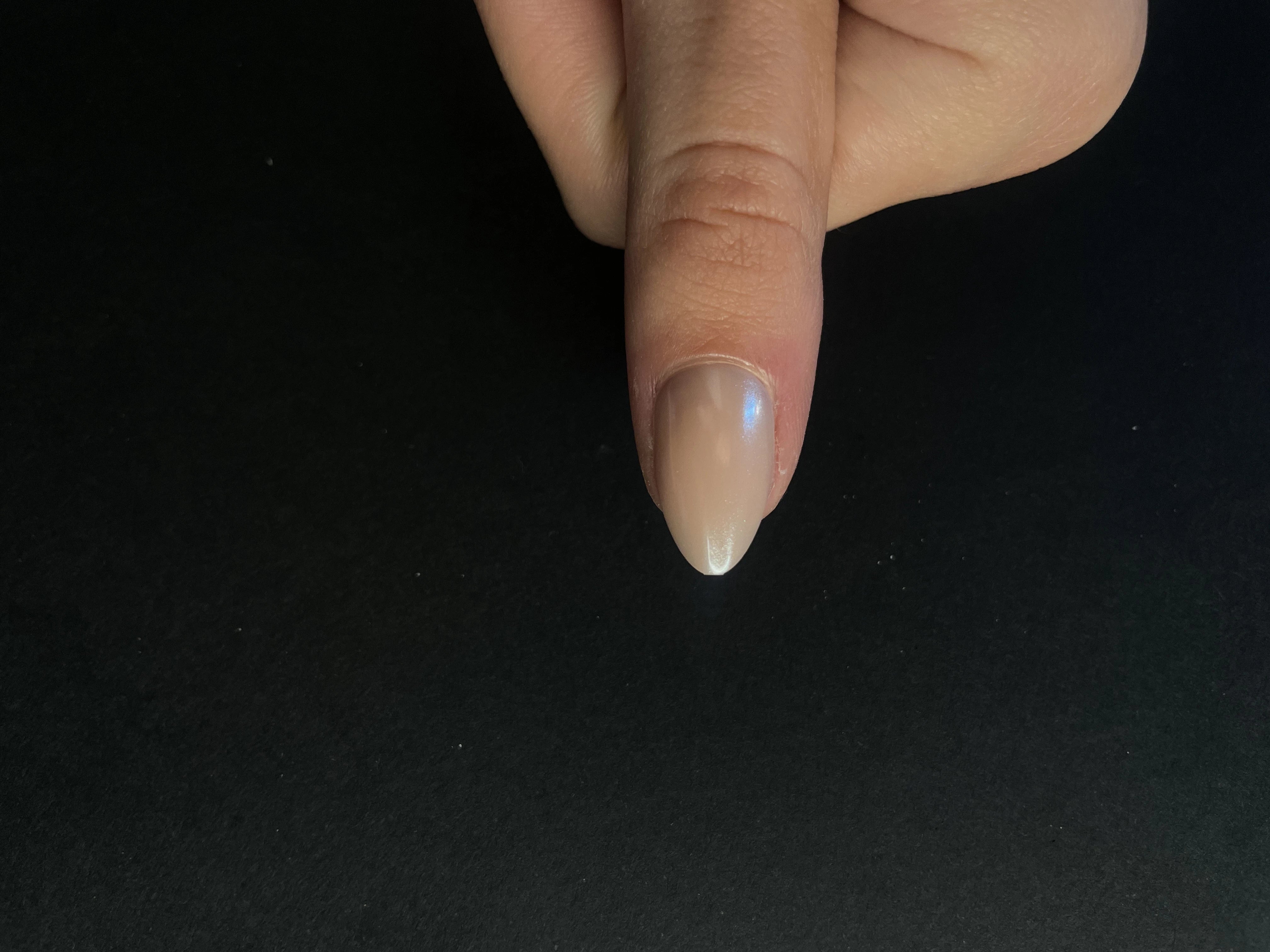 Alignez l'ongle press-on avec votre ongle, en le plaçant légèrement sous la cuticule, puis appuyez doucement vers le haut.
