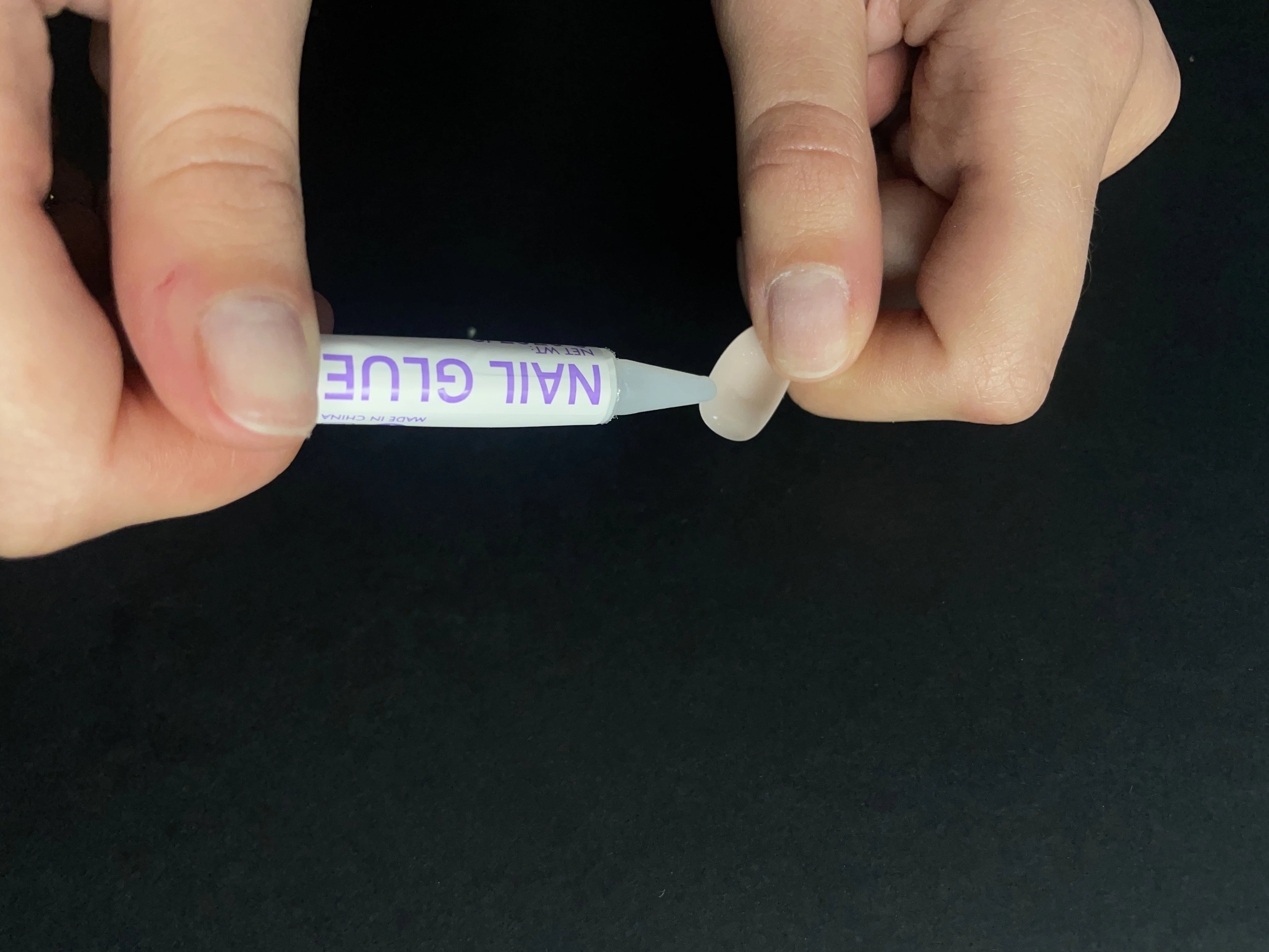 Mettez une petite quantité de colle à l'intérieur de la capsule. Vous pouvez aussi ajouter un peu de colle sur votre ongle naturel pour une meilleure tenue.